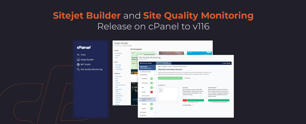 We are excited to start the year off strong by sharing some exciting news: both Sitejet Builder and Site Quality Monitoring will be exclusively released to cPanel v116 and v110 LTS. Here are the dates you should see these great products hit your panel: